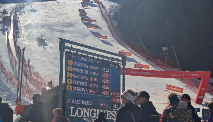 Po prvi vožnji današnjega slaloma za 65. Pokal Vitranc vodi Norvežan Atle Lie McGrath. Drugi je Brazilec Lucas Pinheiro Braathen, tretji pa Belgijec Armand Marchant.